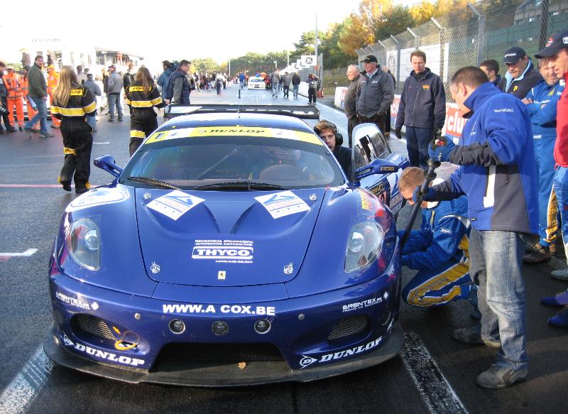A peine le temps de souffler et on se retrouvait sur la pré-grille du Belgian GT pour 2 heures de course. La Ferrari F 430 GT 3 bichonnée par les mécaniciens du Garage Francorchamps Motors avait fière allure sur cette grille, faisant briller sa robe bleu métallisée de toutes ses paillettes. Fred Bouvy à nouveau au départ ne mettait que 6 tours pour prendre d’autorité une 3ème place pourtant âprement convoitée. Devant, une Dodge Viper et une Mosler MT 900 avaient pris le large et semblaient inaccessibles tant leur puissance respective leur autorisaient des chronos très impressionnants.
